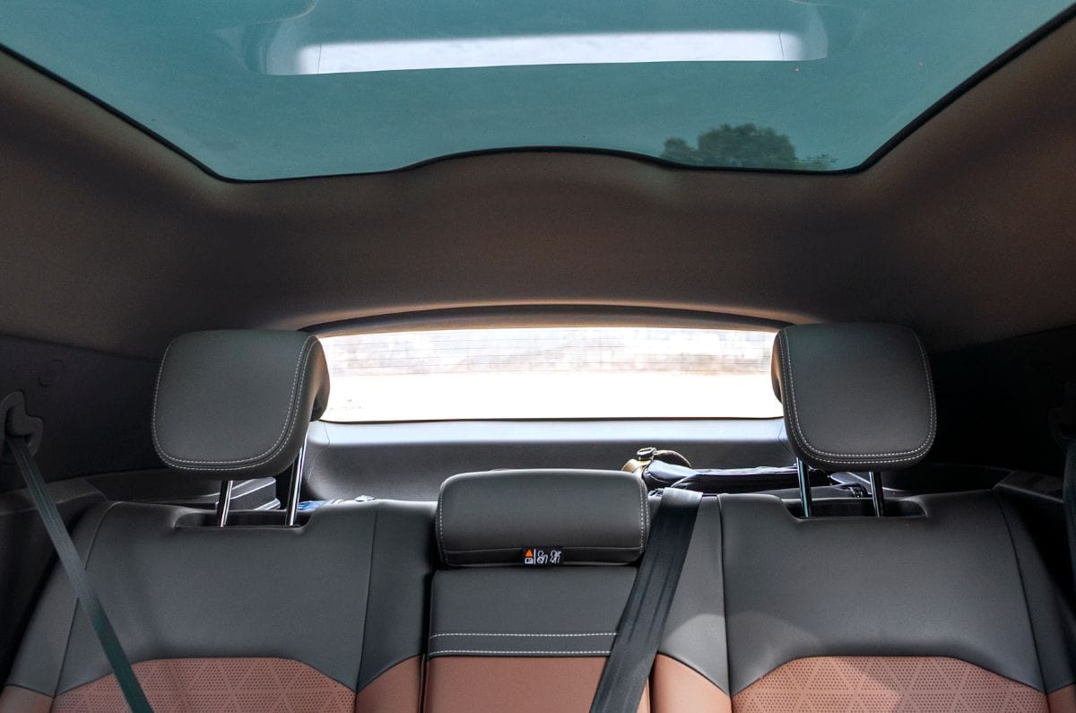 Our test car was the top-spec Sky Infinity variant and, as such, came packed with all the goodies. Features include the 12.9-inch infotainment touchscreen, an 8-speaker audio system, dual-zone auto climate control, an 8-way power-adjustable driver’s seat, ventilated front seats, vegan leather upholstery, a heads-up display, a wireless charger, a panoramic glass roof, a powered tailgate, LED lights all around, an auto-dimming IRVM, and much more.