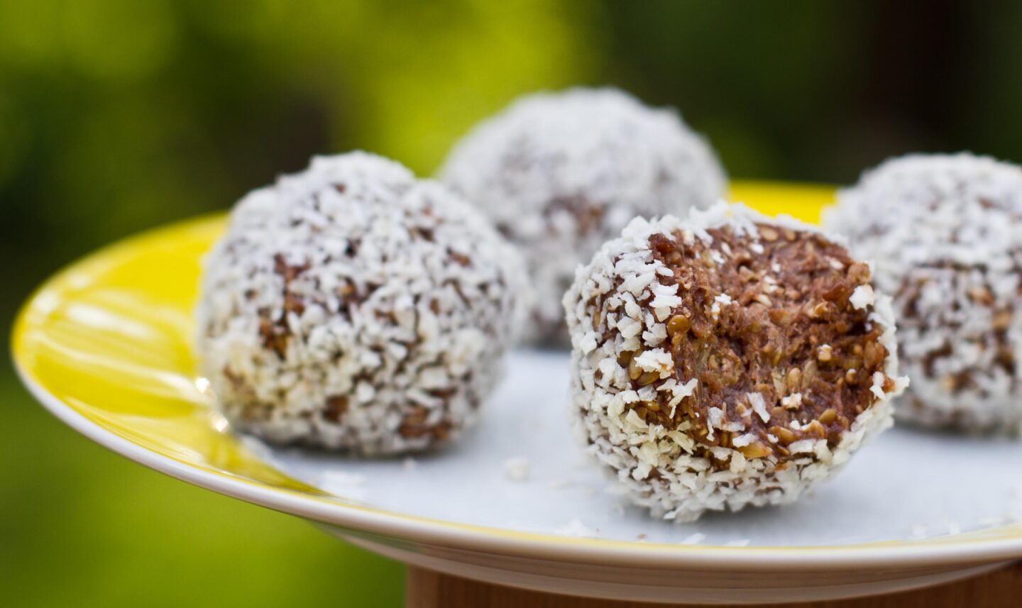 I prefer to roll them in sweetened coconut because the flax balls aren’t very sweet and it gives them a nice pop of sweetness on the tongue, however unsweetened coconut works too.