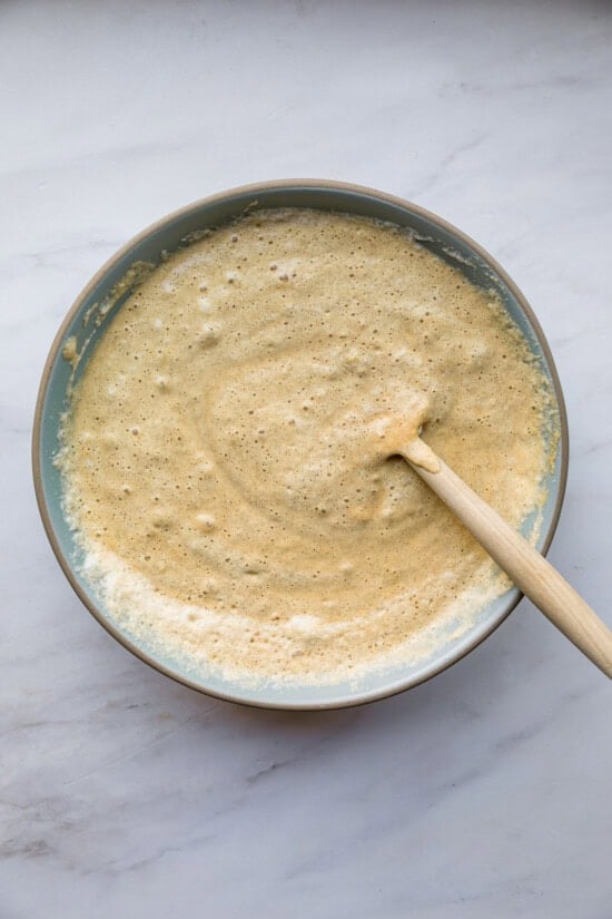 - Water: Transfer the batter to a bowl and add more water, a tablespoon at a time, ensuring it’s thick but pourable.